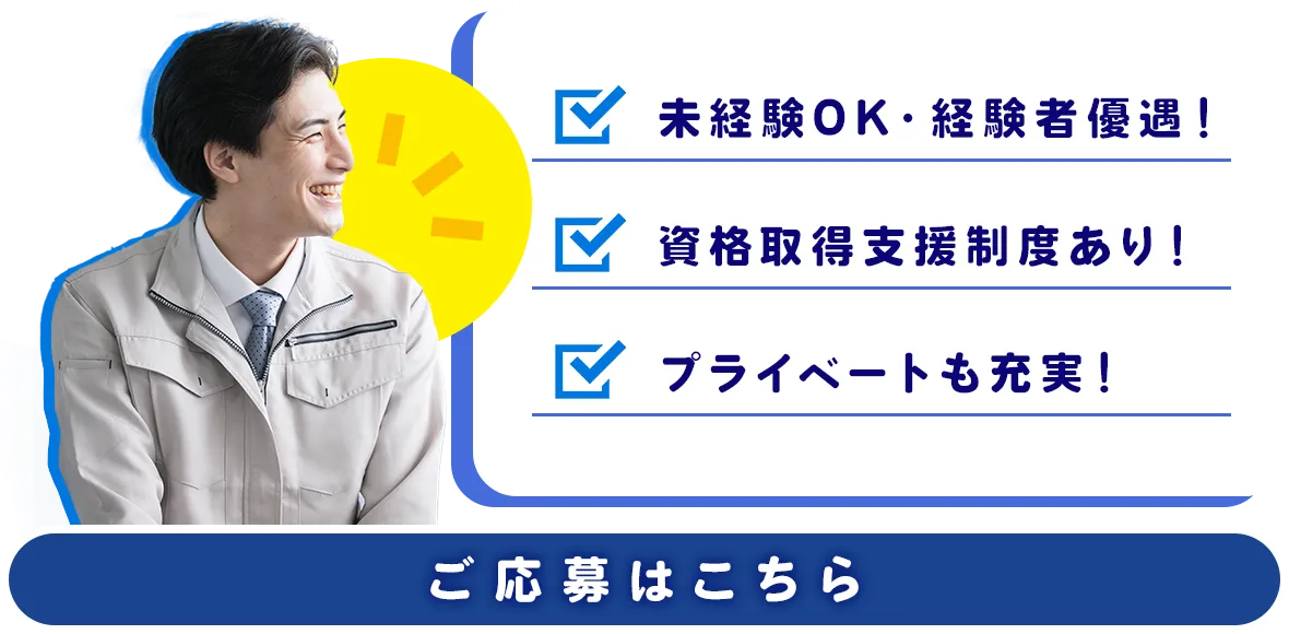 精勤手当や職務手当、現場手当、通信手当など、さまざまな手当があります。また、積極的に成長していきたいという方のために、資格取得支援制度も整っています。仕事で必要な資格だけでなく、業務効率化を図るための資格に関しても、その取得にかかる費用を全額弊社が負担します。頑張った分だけ、自身のスキルが資格として身につく環境です。
